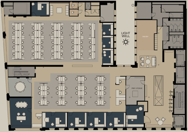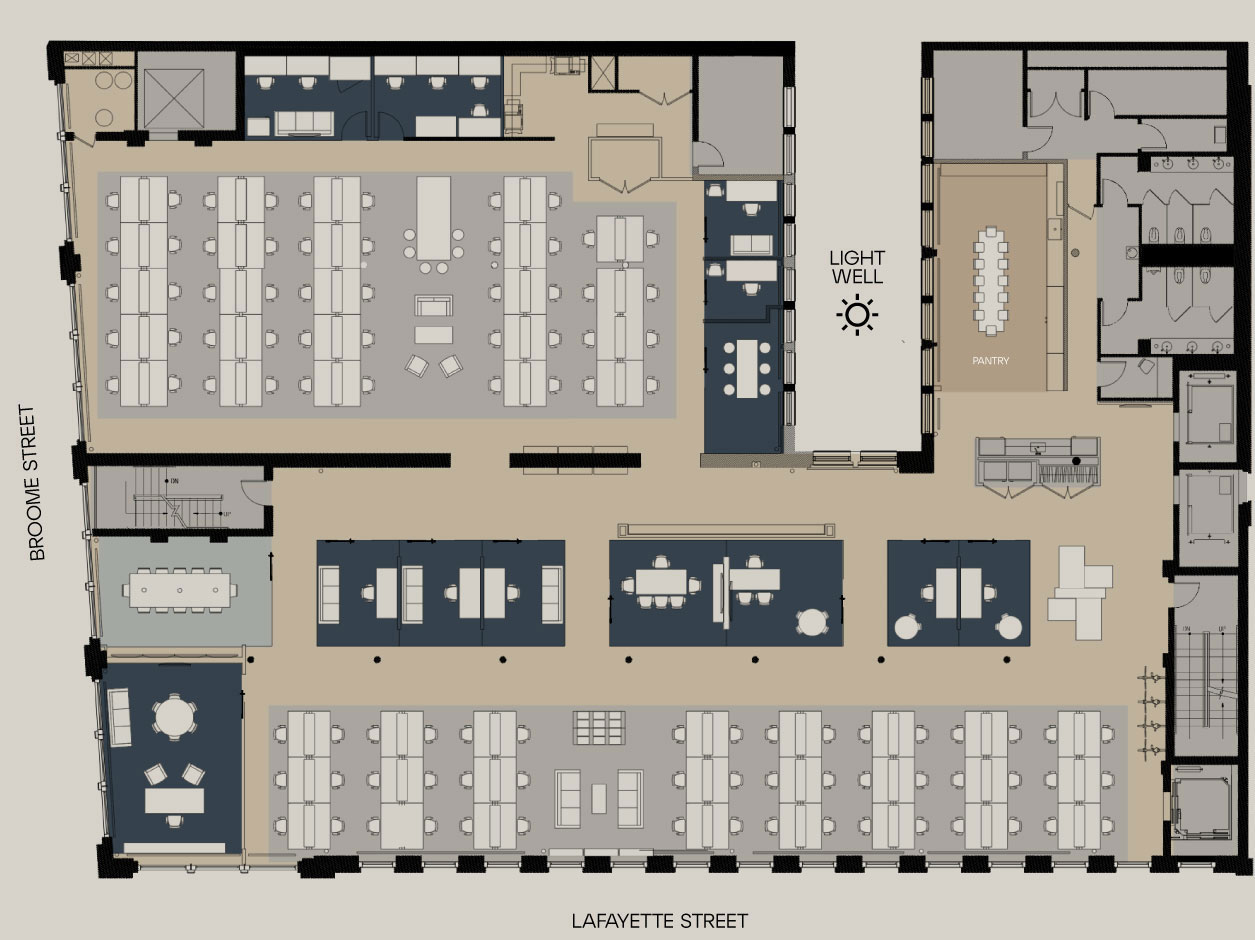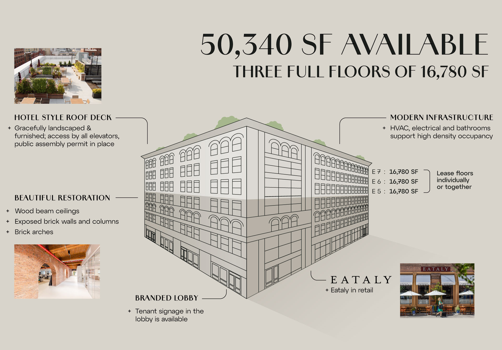 Located at Lafayette and Broome, 200 Lafayette is a beautifully restored boutique office building featuring a landscaped and furnished rooftop deck, advanced infrastructure and efficient floor plates with unique architectural details. Exposed brick and beam and oversized windows provide the perfect environment to enhance productivity.